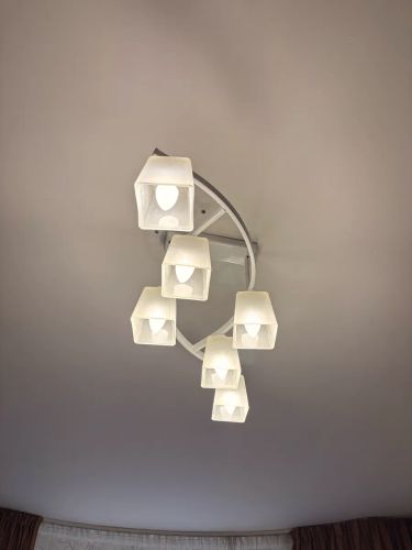 Соберём люстру, повесим на потолок, подключим к электричеству, спрячем провода. Работу выполним за 1–2 часа. Будем отключать свет. Высота стен не более 3 м. Стремянку при необходимости предоставляет клиент.